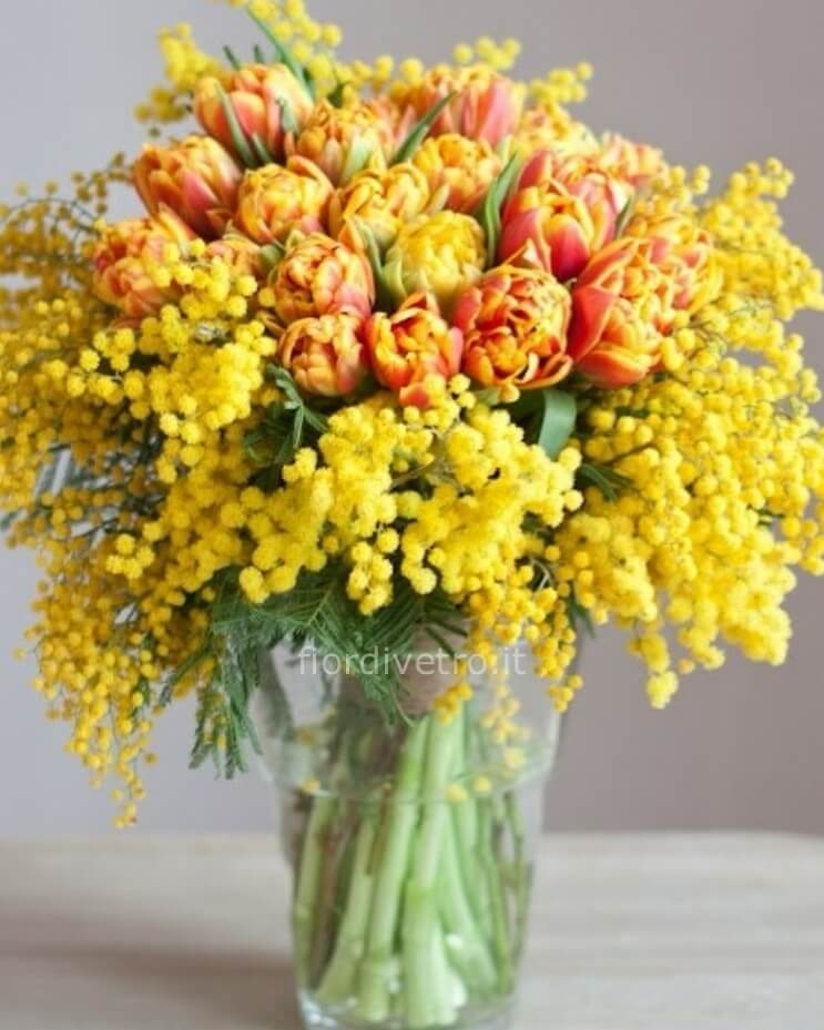 Ogni bouquet è realizzato con attenzione, per esaltare la bellezza dei tulipani e la dolcezza della mimosa, perfetto per celebrare i momenti speciali della tua vita.