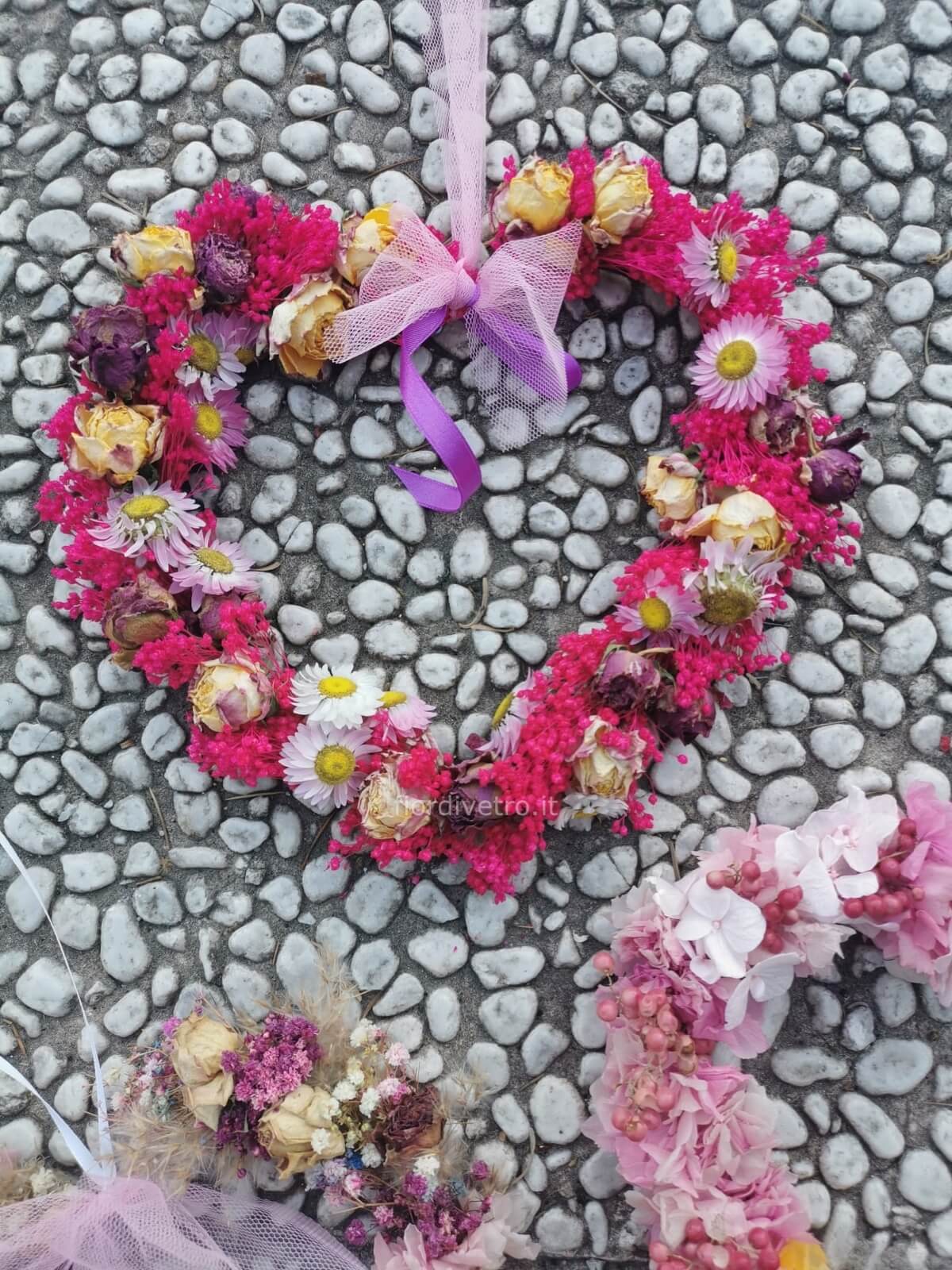 La foto è puramente esemplificativa, ogni ghirlanda viene prodotta con fiori diversi a seconda della disponibilità, e sempre con molto Amore!